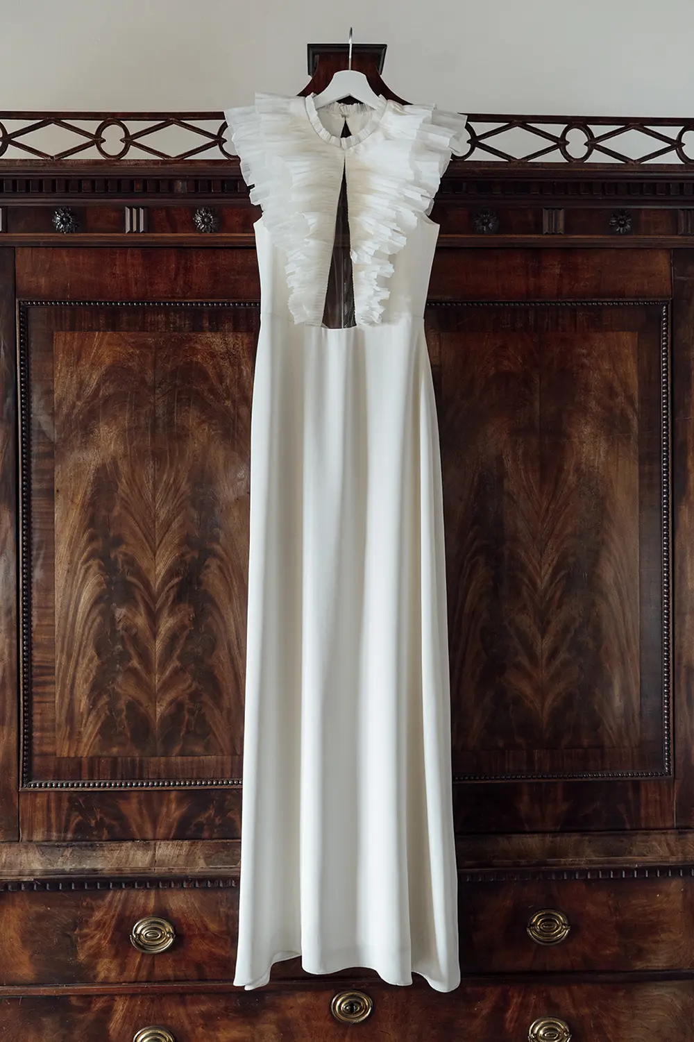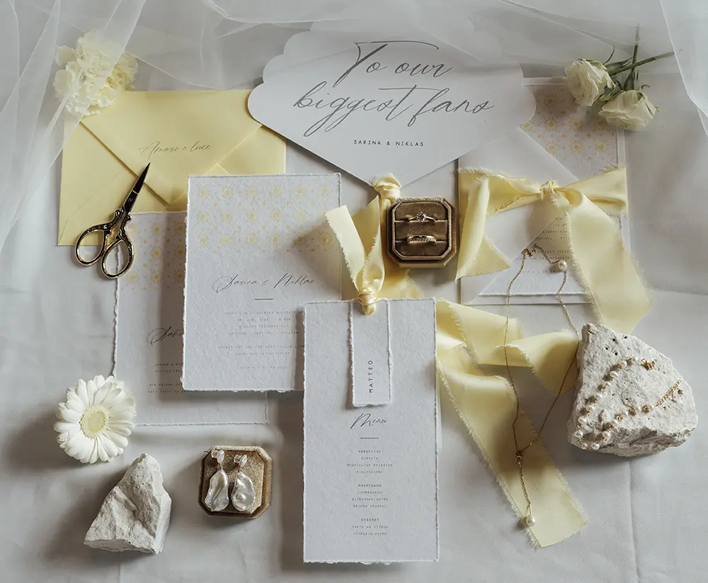 Das kreative Konzept stammt von Melanie von Storia d’Amore Weddings & Events, die gemeinsam mit dem deutschen Team eine raffinierte und lichtdurchflutete Atmosphäre geschaffen hat. Die Farbpalette bewegte sich zwischen Elfenbeinweiß und zartem Gelb – Nuancen, die Wärme und Leichtigkeit ausstrahlen und perfekt für eine elegante, moderne Braut sind.
